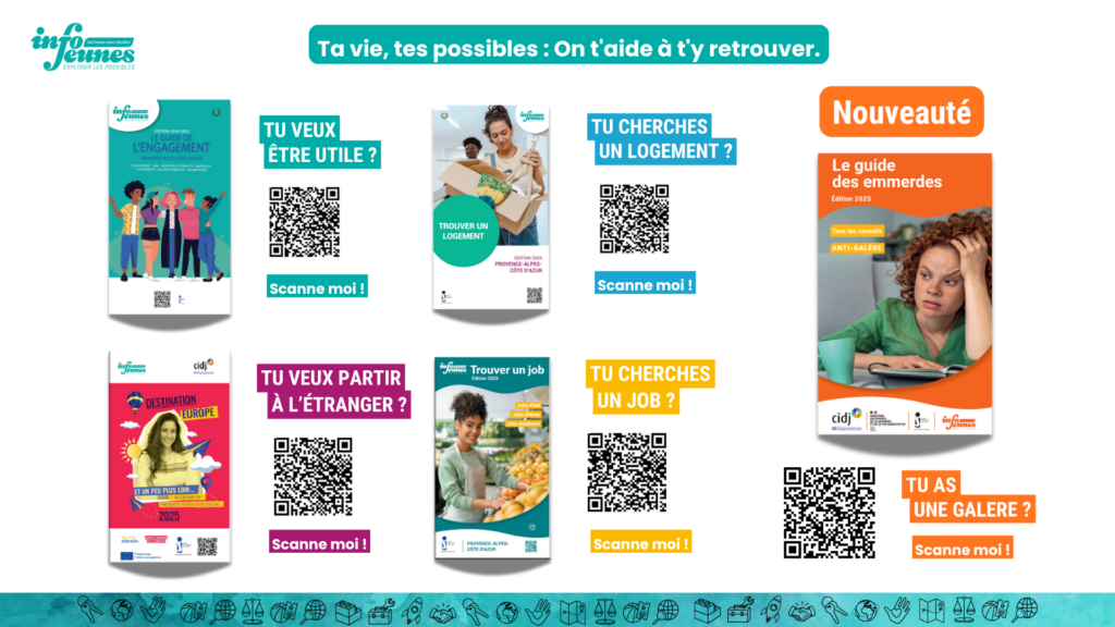 Info Jeunes à votre écoute Info Jeunes Sud Provence-Alpes-Côte d’Azur sera présent sur le salon pour informer et accompagner les jeunes dans leurs démarches d’orientation. Tout au long de l’année, les structures Info Jeunes proposent un accueil gratuit, une information fiable et des conseils personnalisés pour aider chaque jeune à construire son projet. Pour connaître le Point Info Jeunes le plus proche, rendez-vous sur la carte.