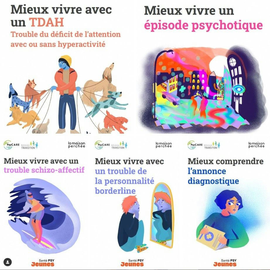 Cette série est le fruit d’une collaboration étroite entre le Réseau Transition, et plus particulièrement le C’JAAD du GHU Paris Psychiatrie et Neurosciences et le C2RB du Centre hospitalier La Chartreuse de Dijon, en partenariat avec l’association La Maison Perchée.